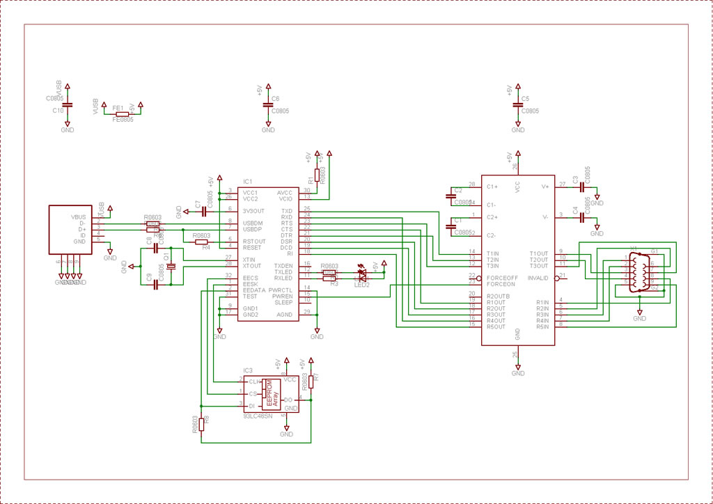 je souhaite realiser un adaptateur USB<>RS232, j'ai donc dessiné le schema avec Eagle, et j'aurais aimer avoir votre avis